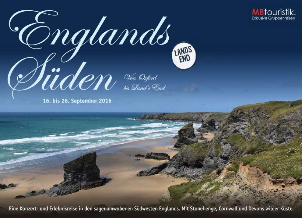 Eine Konzert- und Erlebnisreise vom 16. bis 26. September 2016 in den sagenumwobenen Südwesten Englands. Mit Stonehenge, Cornwall und Devons wilder Küste.