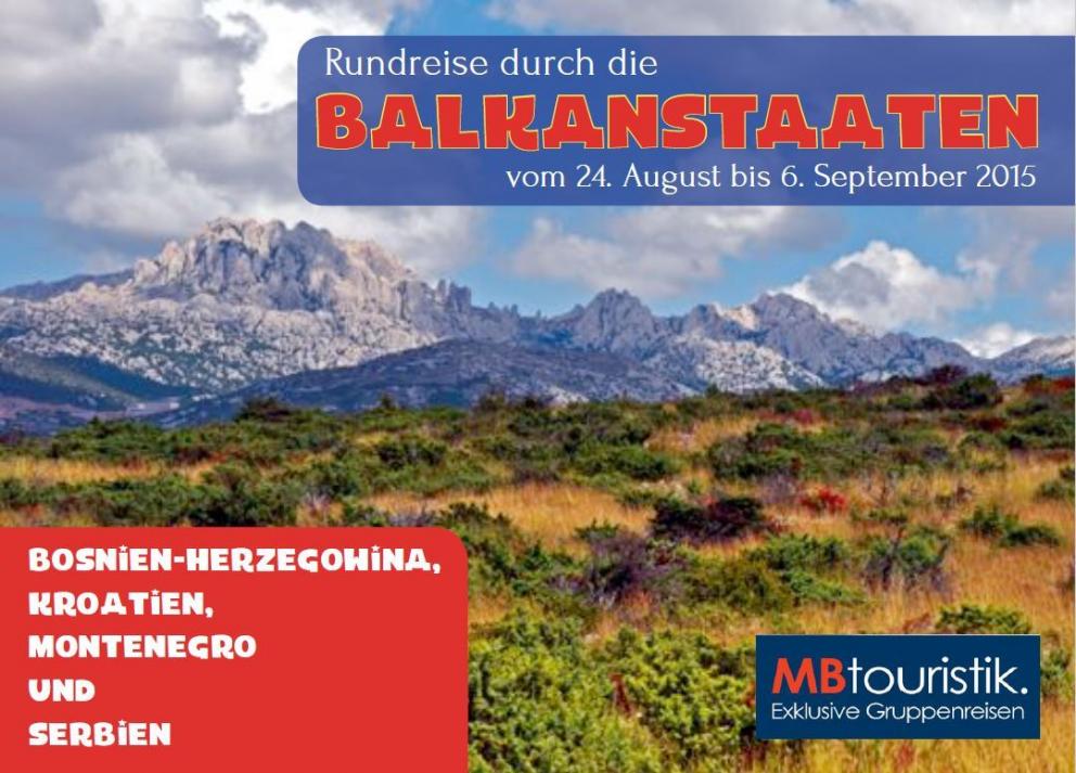 Die Balkanstaaten Bosnien-Herzegowina, Kroatien, Montenegro und Serbien stehen im Sommer 2015 auf dem Reiseprogramm von MBtouristik.